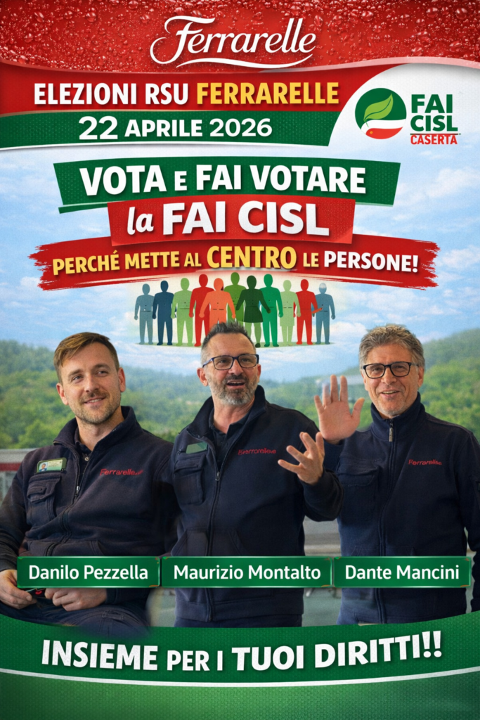 Metteremo al centro, come sempre, i diritti e la dignità dei lavoratori, il tutto per un creare un ambiente lavorativo sano e giusto. Vi aspettiamo, votate e fate votare, un saluto dal vostro sindacato FAI-CISL di Caserta.